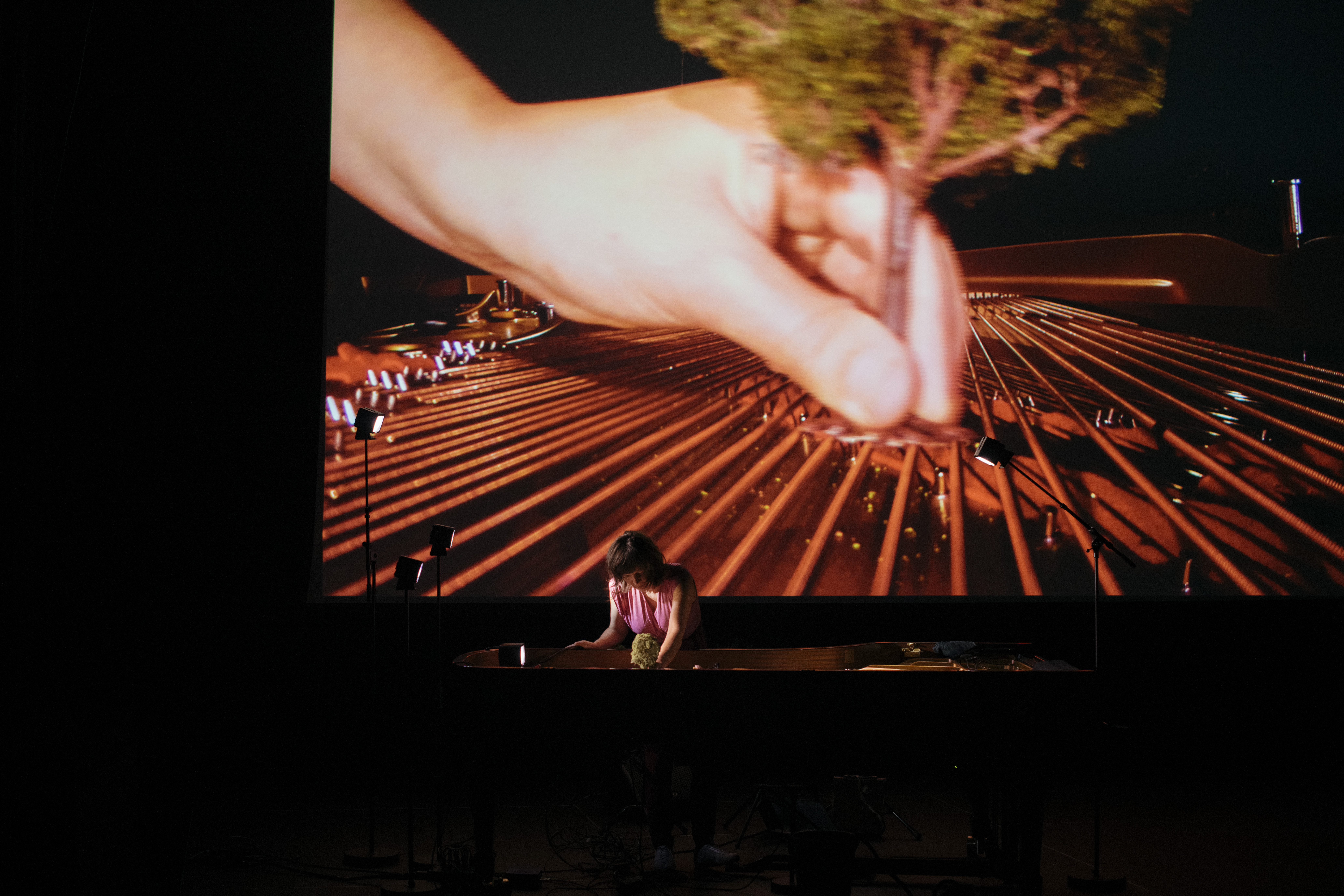 I then searched for sounds inside the piano that resemble the sounds of the forest. Insects, birds, leaves, water, creaking trees etc. and the human presence in the forest is the inspiration of the sound material used to create an artificial forest, and the audience is placed in the middle of it.